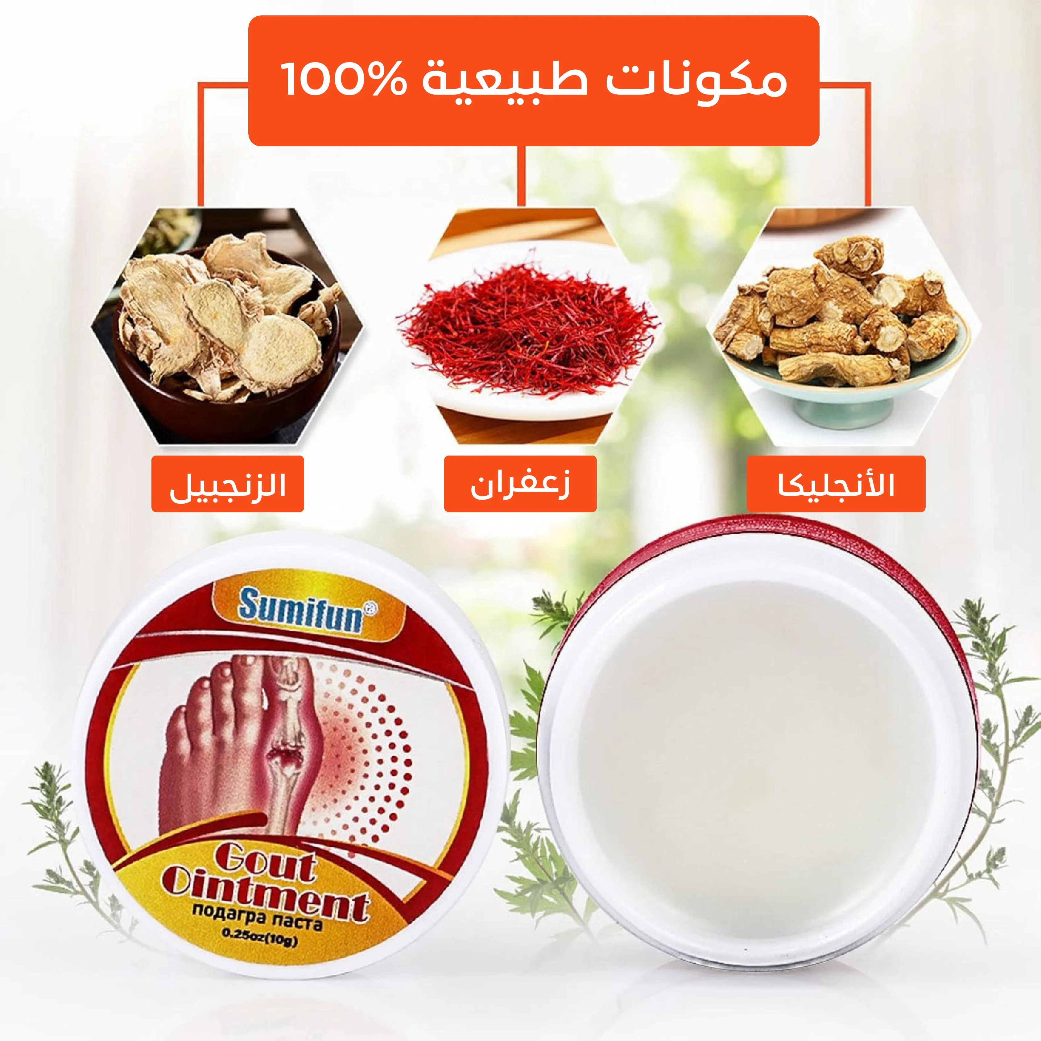 أنت تعاني من ألم المفاصل أو تورم الأصابع والركبة، مرهم النقرس الطبيعي بيكون صديقك اليومي. بتركيبة طبيعية من الأنجليكا، الزعفران، والزنجبيل، يخفف الألم بسرعة ويهدي الالتهاب عشان ترجع تتحرك براحتك